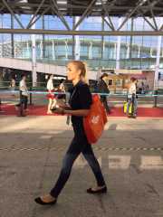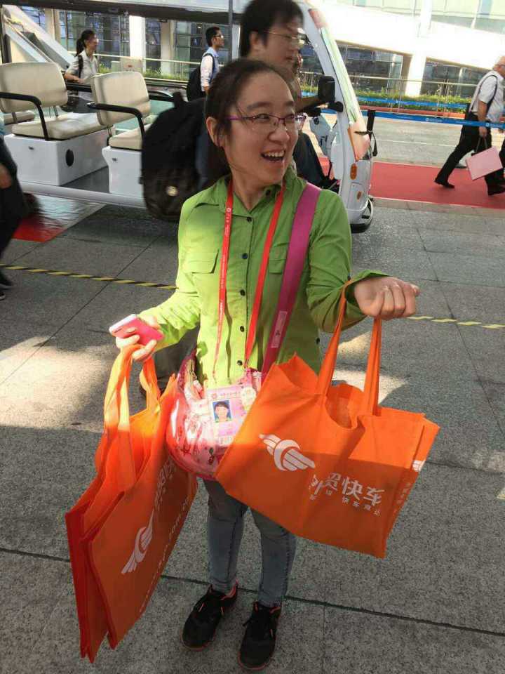 下面這位歐洲美女真可以說是我們的形象大使,從展會開始,就一直背著我們的袋子。