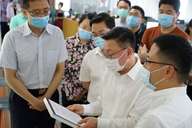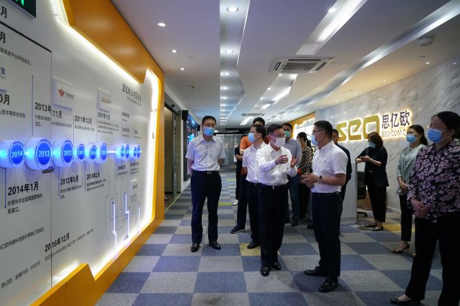 2020年5月22日(周五)上午,杭州市委常委宣傳部部長戚哮虎,杭州市宣傳部副部長鈕俊,江干區(qū)委常委彭埠街道書記沈燕俊、江干區(qū)委常委宣傳部部長許鶯燕相關(guān)領(lǐng)導(dǎo)一行到訪我司,思億歐董事長何旭明先生、思億歐高級副總裁徐蘇源以及相關(guān)公司負責(zé)人熱忱接待,介紹思億歐公司和產(chǎn)品情況。