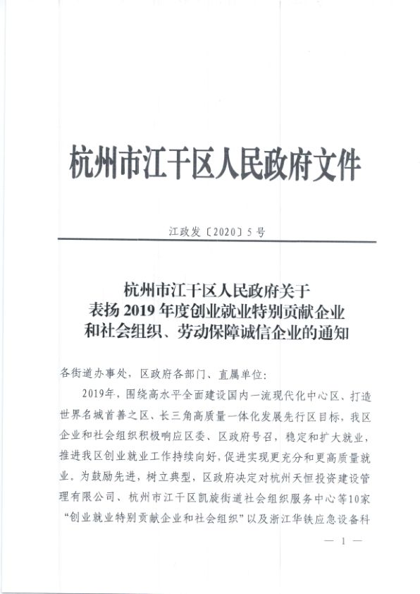 杭州市江干區(qū)人民政府授予思億歐“創(chuàng)業(yè)就業(yè)特別貢獻(xiàn)企業(yè)”榮譽(yù)稱號(hào)