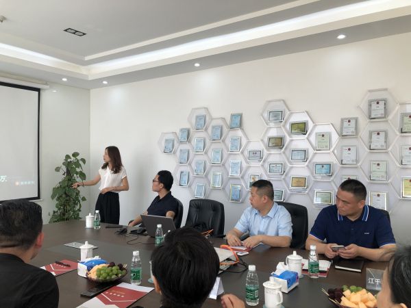 隨后,徐總帶領(lǐng)大家在會(huì)議室進(jìn)行深入的交流,首先由思億歐周萍女士對(duì)外貿(mào)快車產(chǎn)品進(jìn)行了詳細(xì)介紹,尤其是外貿(mào)快車的全國(guó)公益課堂——外貿(mào)大講堂和思億歐商學(xué)院,獲在座領(lǐng)導(dǎo)及企業(yè)家團(tuán)隊(duì)的一致好評(píng),李主席在高度認(rèn)可的同時(shí)希望接下來(lái)有機(jī)會(huì)能通過(guò)區(qū)域間合作往來(lái)以實(shí)現(xiàn)雙贏。