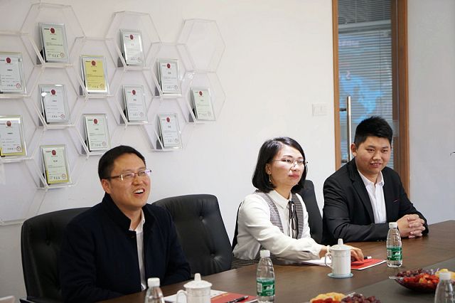 2019年3月15日(周五)下午,西安商務局副局長陳天如蒞臨參觀我司,董事長何旭明熱忱接待,并向陳副局長介紹思億歐公司和產(chǎn)品情況。